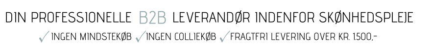 Med 30 års erfaring fra kosmetologfaget driver vi en af landets største webshops for professionelle i skønheds- og wellnessbranchen. Vi har håndplukket og testet vores udvalg af brands og produkter, og vi er stolte af og tror på hvert et produkt.