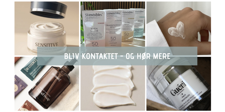 Bliv kontaktet. Udfyld formular herunder: Fornavn * Email * Postnr. * Telefonnr. * Jeg ønsker at høre mere om: * Dr. Baumann SkinIdent BeauCaire Skinvisibles Guéri toxSkincare Uddyb evt. hvis specifikke spørgsmål eller lign. Vi lover at passe på dine data og holde dem sikret.