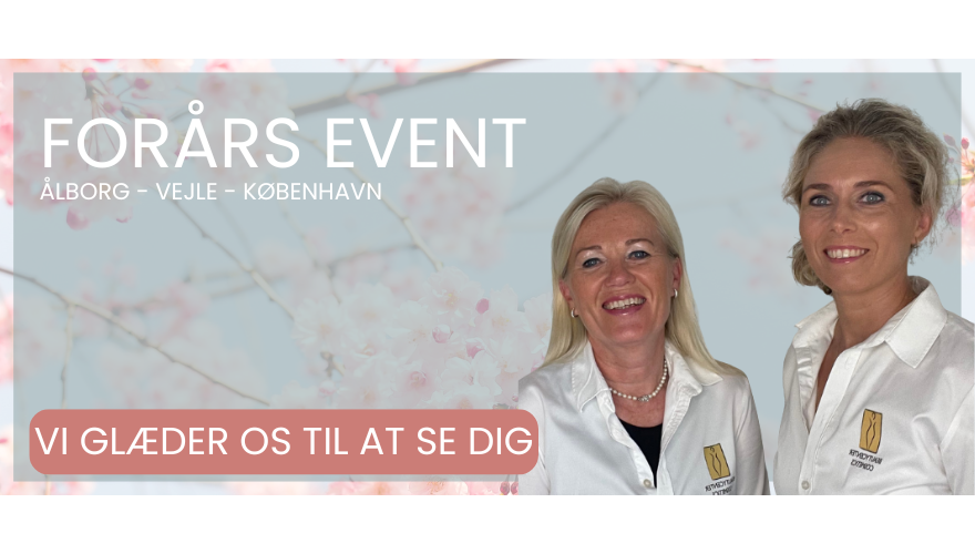 Tilmelding Forårs Event Jeg vil gerne deltage * Ålborg d. 17. Marts 2026 kl. 17.30-20.30 Vejle d. 24. Marts 2026 kl. 17.30-20.30 København d. 16. april kl. 18.00-21.00 Kliniknavn * Fornavn * Email * Tlf.: * Antal * 1 person 2 personer 3 personer Jeg gad godt høre om... Tilmelding er bindende. Sidste tilmelding er 9. marts 2026. Event er gratis - ved udeblivelse opkræves kr. 350,- Vi lover at passe på dine data og holde dem sikret.